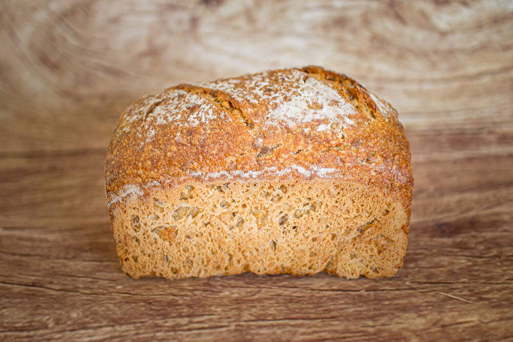 Le pain aux six graines est un méteil de blé et de seigle typique des pains allemand. Il contient un mélange de graines et de flocons d’avoine qui améliore sa conservation. Fabriqué au levain, riche en farines semi complètes ce pain a un grand intérêt nutritionnel et un faible indice glycémique.