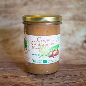 Faible teneur en sucre (teneur totale de 38g pour 100g) avec des petits morceaux de châtaignes.