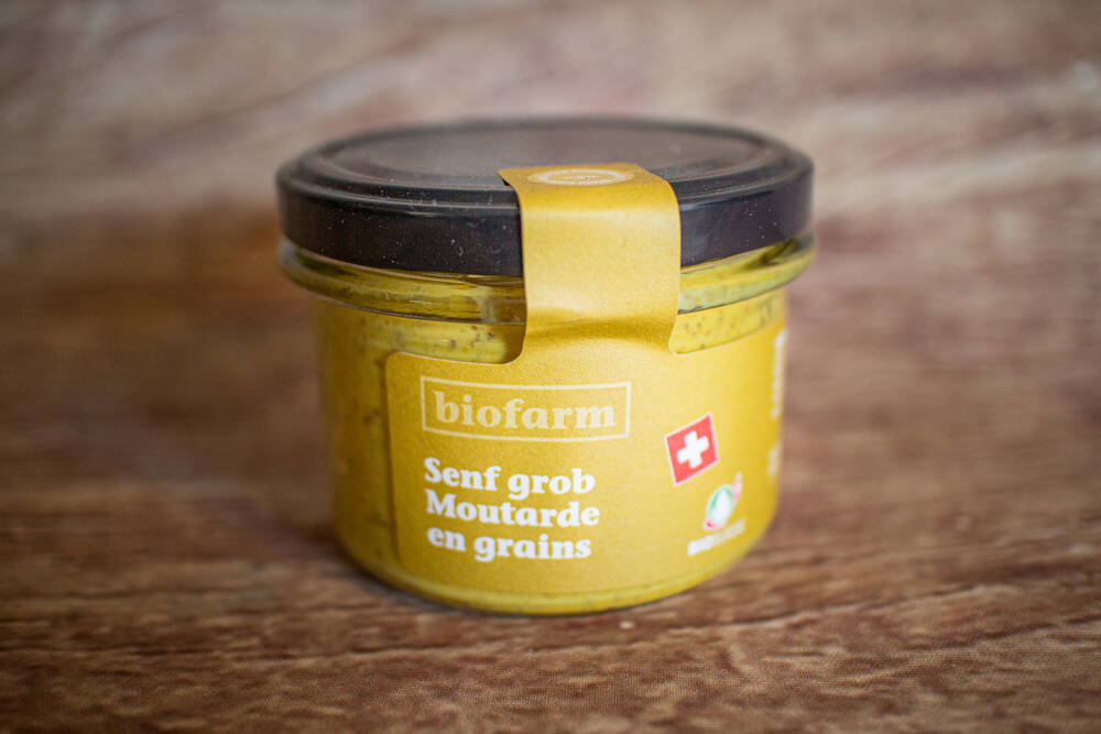 Moutarde à gros grains, racée, pour tous les jours ! Pour la préparation des moutardes suisses des graines de moutarde provenant de la culture suisse selon les normes Bourgeon sont utilisées et la production se fait entièrement sans ajout de sucre cristallisé. Cette moutarde est fabriquée à partir de graines de moutarde jaune et brune grossièrement concassées et est idéale avec de la viande rôtie ou fumée.