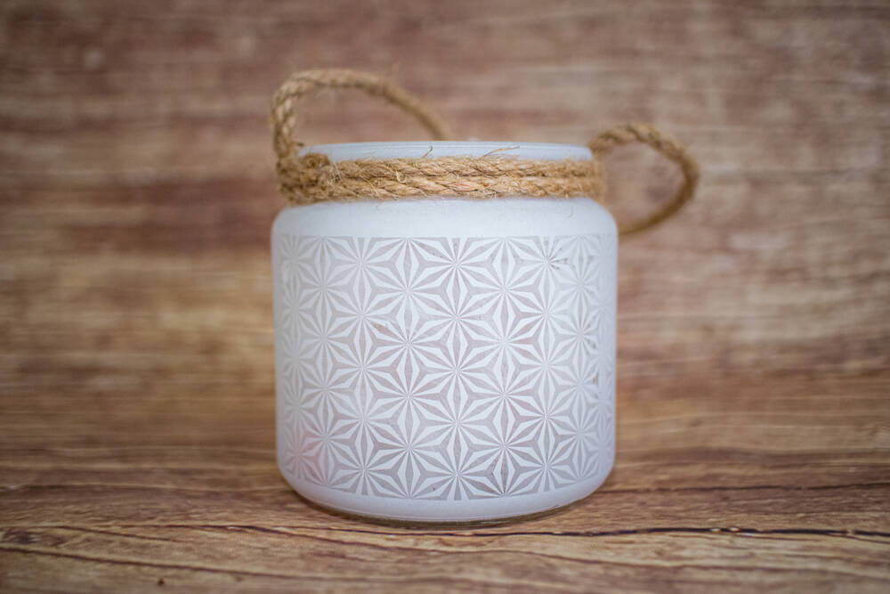 Photophore en verre décoré, environ 10 x 10 x 9.5 cm